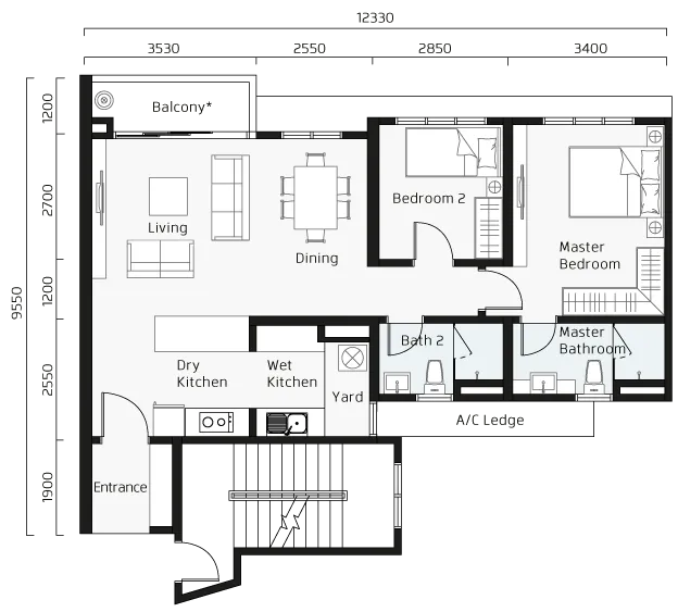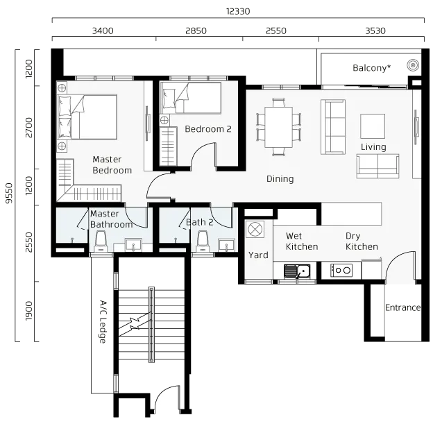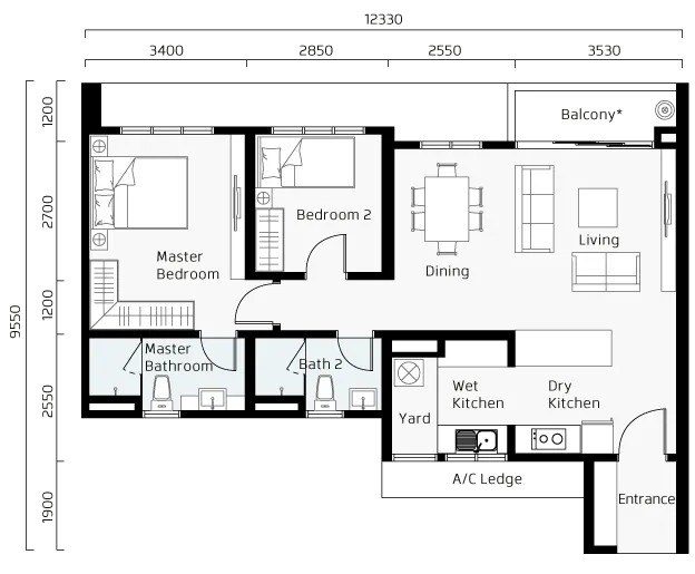 Affordable pricing from 2 to 4 rooms. With over 1,000 sqft of living space, there's plenty of room for everyone to find their own space and enjoy their home to the fullest.